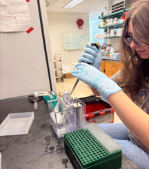 In the lab, I have been refining my western blot, cell culturing, nuclei purification, and Hi-C prep skills. When comparing the blots I first started making on my own to the ones I have now, there has been a significant improvement. In the beginning, many of the blots had air bubbles but now there is only the occasional bubble! I am proud of the progress I have made thus far. I am currently at a point where I have been using the other lab skills I have been taught on my own! I have started to make my own samples for western blots through cell culturing and nuclei purification. This has allowed me to have a greater understanding of the time it takes for my entire experiment from beginning to end and the significance of each step as it pertains to the study of cohesin. I am thrilled to continue working and I cannot wait to present at the symposium!